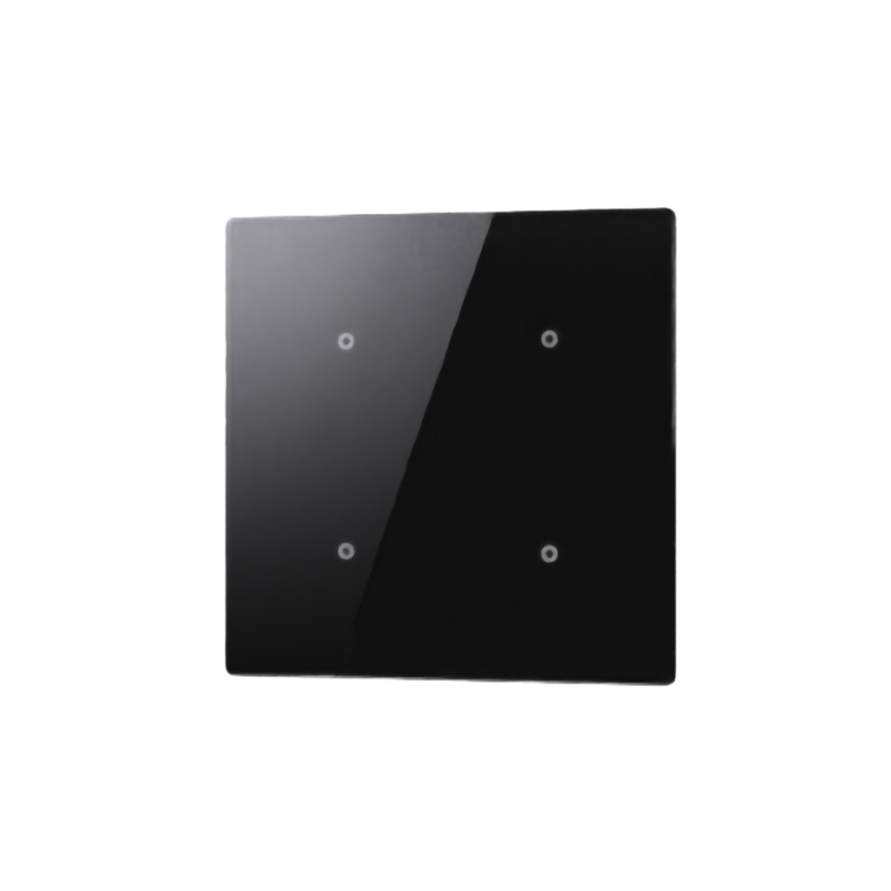 Μαύρο μπουτόν τεχνολογίας BUSing σε τετράγωνη μορφή με 4 ανεξάρτητες και πλήρως προγραμματιζόμενες περιοχές αφής που διαθέτει ένδειξη LED για κάθε περιοχή καθώς και ενσωματωμένο αισθητήρα θερμοκρασίας με κρυφό ελεγκτή PI για μέγιστη άνεση και εξοικονόμηση ενέργειας λειτουργώντας ως ελεγκτής On/off PWM ή συνεχούς θερμοκρασίας για τον έλεγχο κύριων και βοηθητικών συστημάτων θέρμανσης και ψύξης.