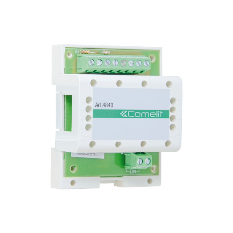 Διανομέας γραμμής σε καλωδιώσεις παράλληλων στηλών, για συστήματα BUS- 2 καλωδίων. Επιτρέπει τη διανομή σήματος από 1 σε 4 στήλες.